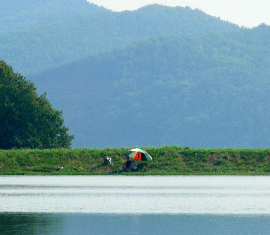 건너편 하류쪽에 조사들이 자리를 잡고 낚시 중입니다.