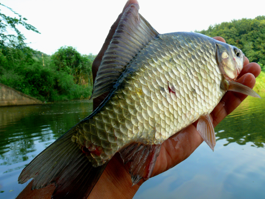 강하게 챔질을 해보니 제법 앙탈을 부리는 것이 씨알이 괜찮나 싶었는데 꺼내 보니 체고가 동글동글한 7치급 붕어다.