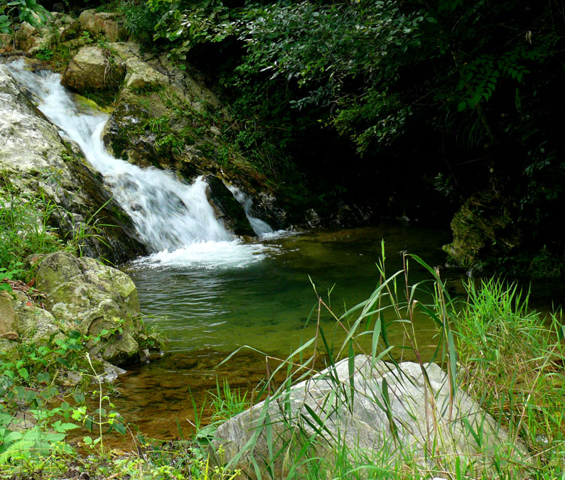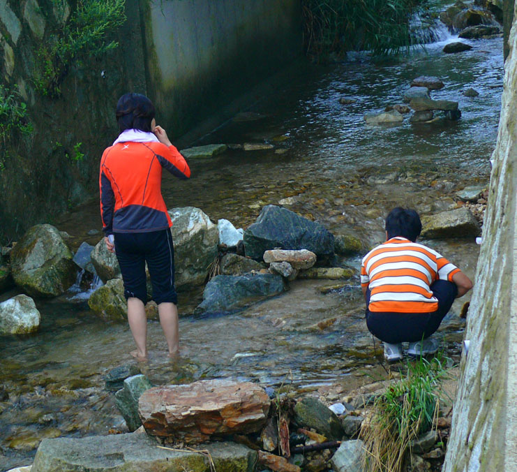 아침에 지져기는 새소리에 잠이 깨어서 계곡물에 세수를 하고,