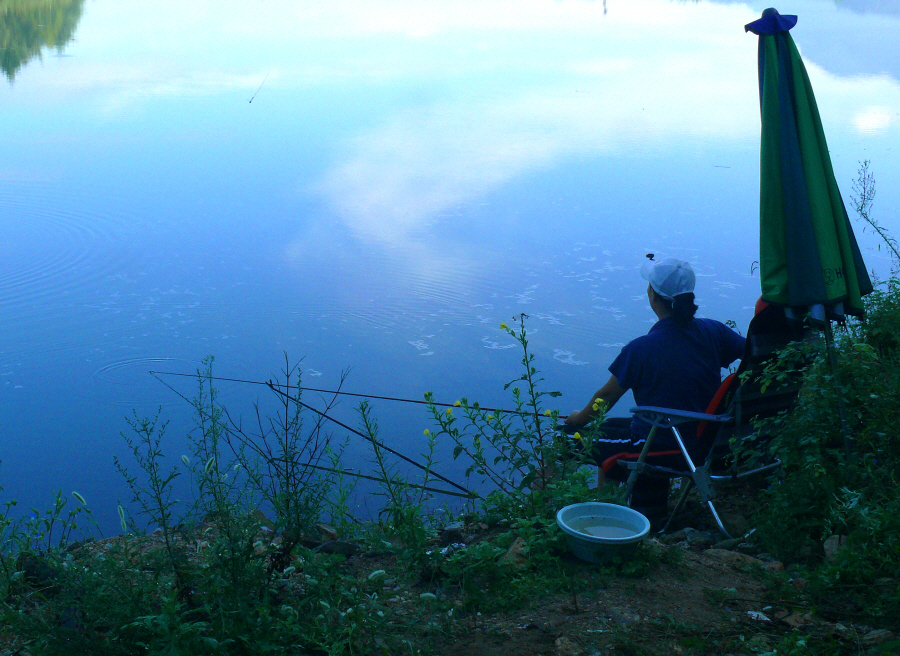 아침낚시를 즐기는 마눌님 모습