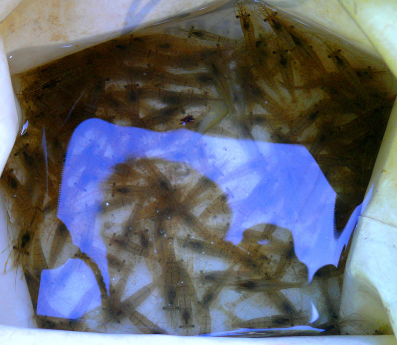 씨알 좋은 새우를 채집망 한번으로 이 정도입니다.