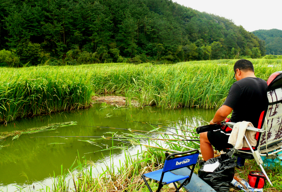 아침이 되면서 씨알좋은 붕어를 보기 위해 수초낚시를 시도해 보았습니다.