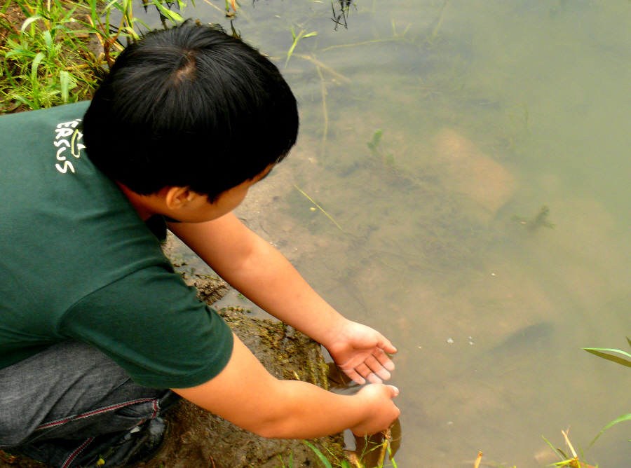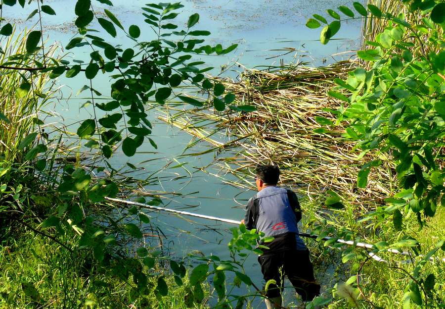 동반출조를 한 붕타령님은 수초작업 중입니다.
