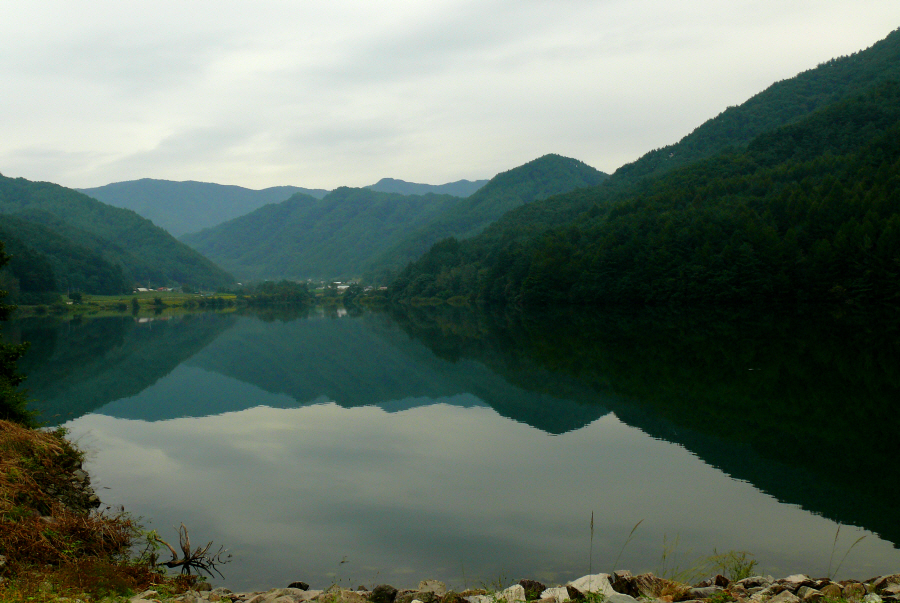 깨끗한 수질을 자랑하는 홍천 생곡지 전경