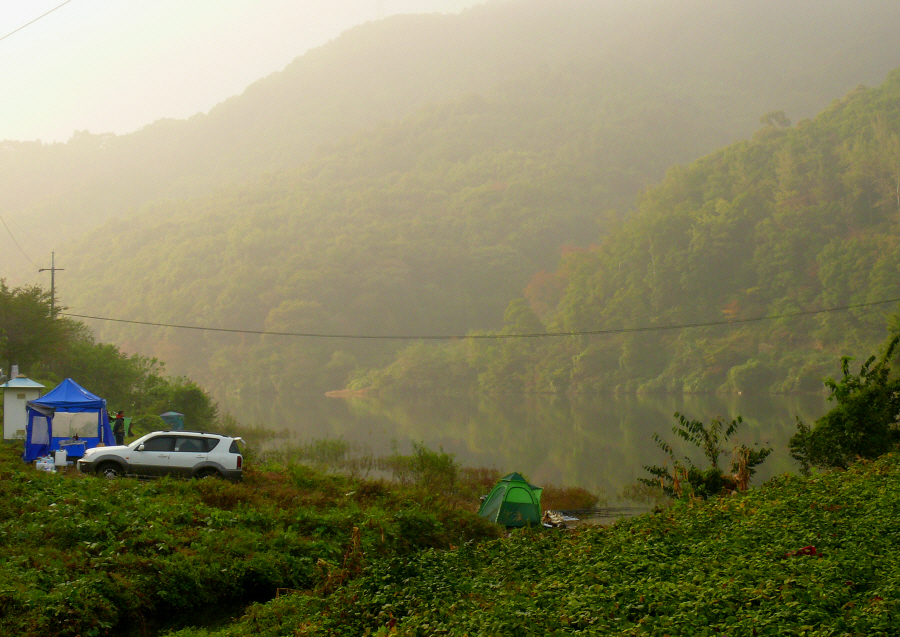 밤새 잔씨알의 입질로 지친 마눌님은 자정 무렵에 텐트에서 잠이 들었고,