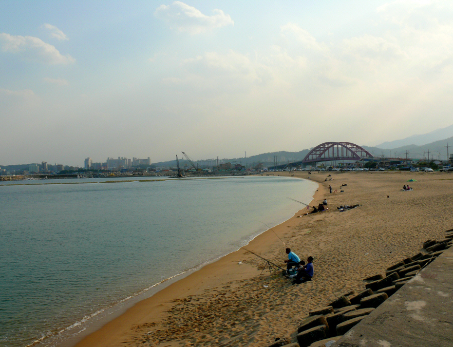 백사장에서는 아마 황어 릴낚시를 하는 모양입니다.