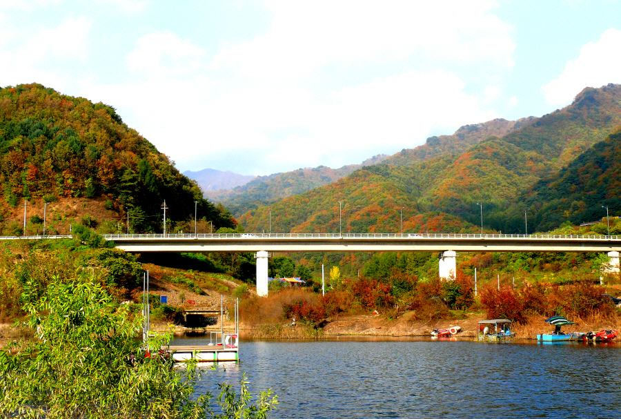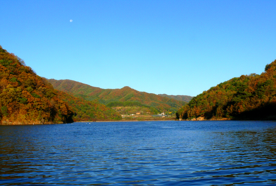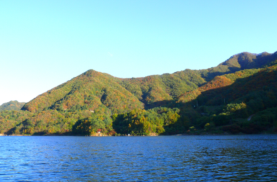 가을 단풍이 멋지게 어울어진 소양댐 추곡리권입니다.