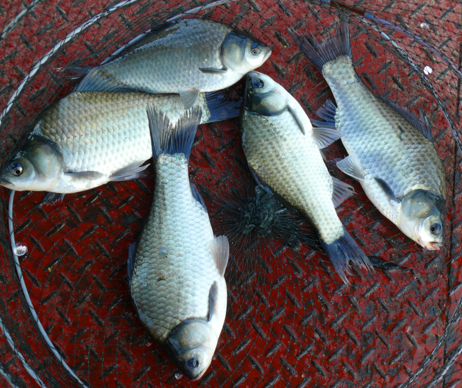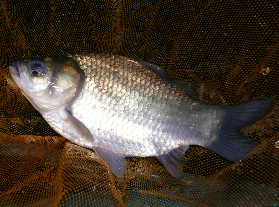 필자가 밤 10시경 걸어 낸 월척 떡붕어입니다. (힘이 좋습니다)