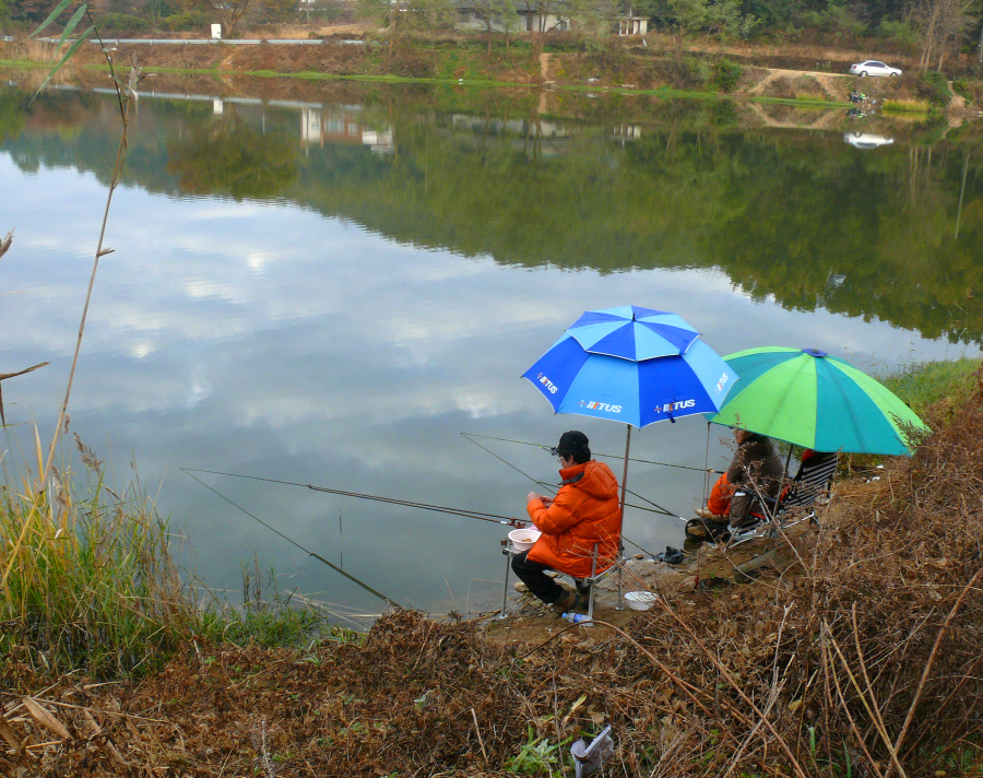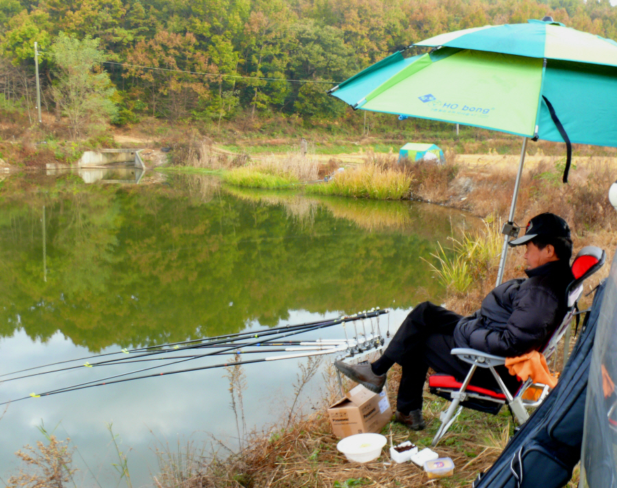 완전히 몰황을 보여주었는데 아침에 햇살이 퍼지면서 간간히 붕어를 걸어 내는 모습을 볼 수 있었습니다.