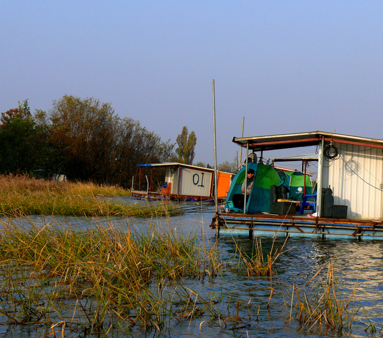 안골지 상류권에 자리 잡은 수상좌대들 모습
