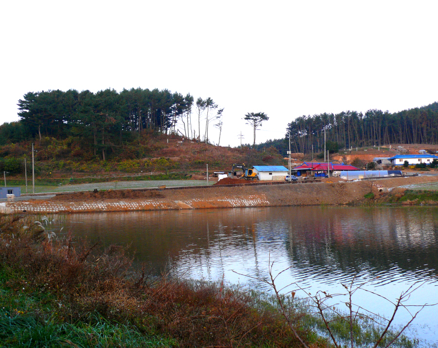 저녁도 먹지 않고 찾아간 창촌지는 상류권에 새로 길이 생기는지 한참 도로 작업 중이다.