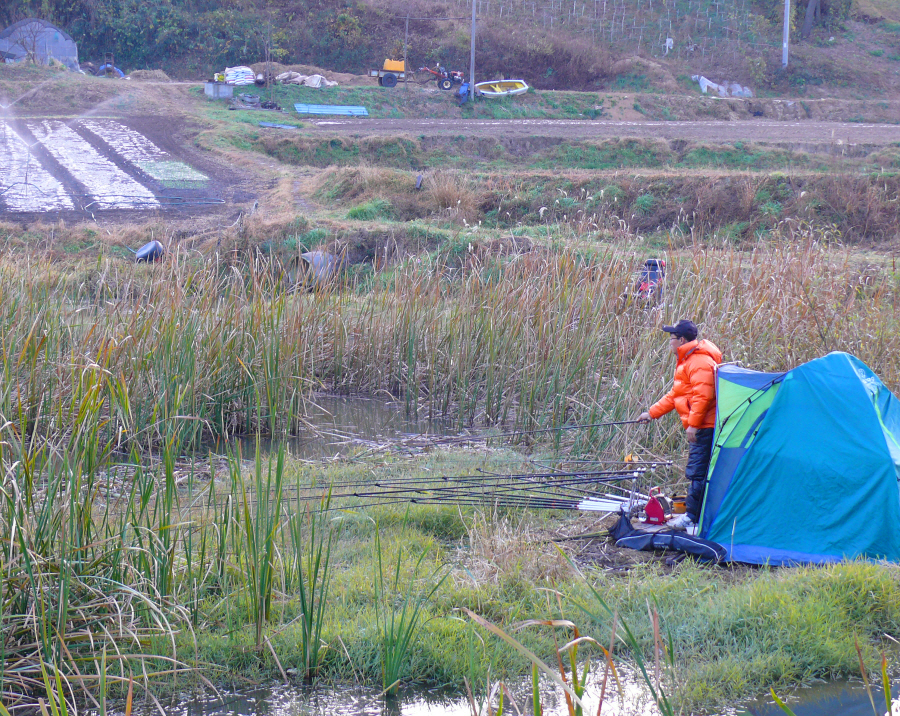 부들 포인트를 둘러 싸고 밤낚시에 임하고 있었는데 두치님의 포인트가 가장 좋아 보인다.