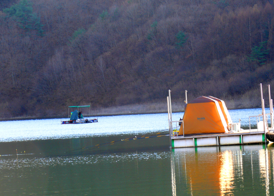 초겨울 댐낚시 마니아들이 좌대에 올랐습니다.