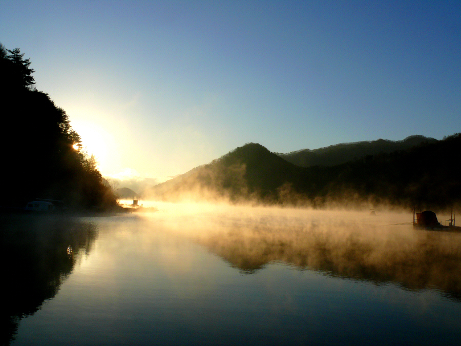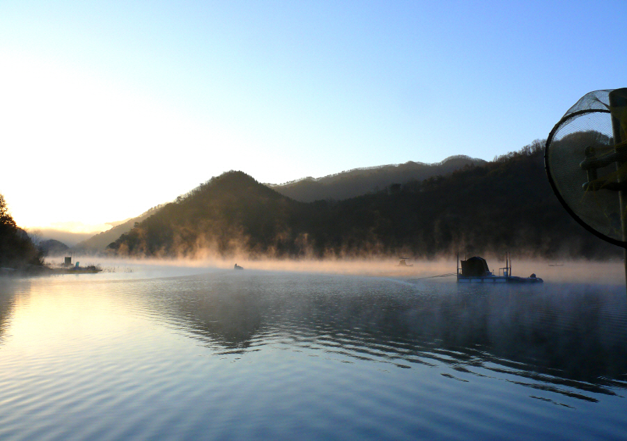 새벽 4시경이 되면서 물안개가 피어 오르기 시작하는데 환상적인 풍경을 보여준다.