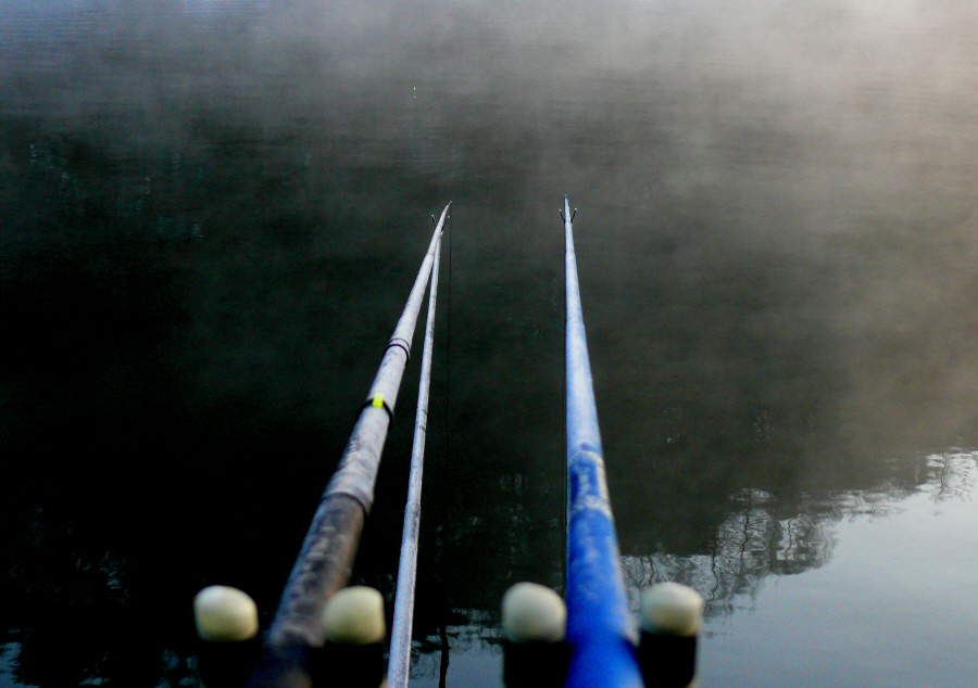 낚싯대에 서리가 내려서 초겨울을 연상케 합니다.
