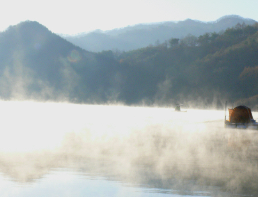 밤새 꽝을 쳤지만 멋진 물안개속에서 지낸 하룻밤은 아쉽기 보다는 퍽찬 밤을 보낸 것 같다.