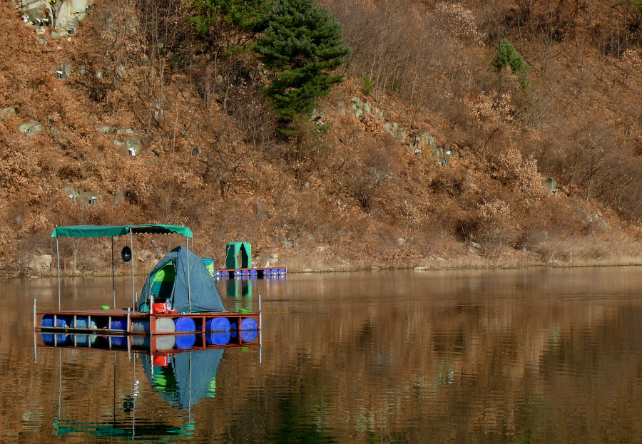 철수 짐을 다시 들고 최하류권에 자리잡은 좌대에 올랐다.