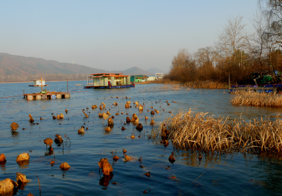 한겨울에도 걱정없이 댐낚시를 즐길 수있는 의암댐 자갈섬낚시터.