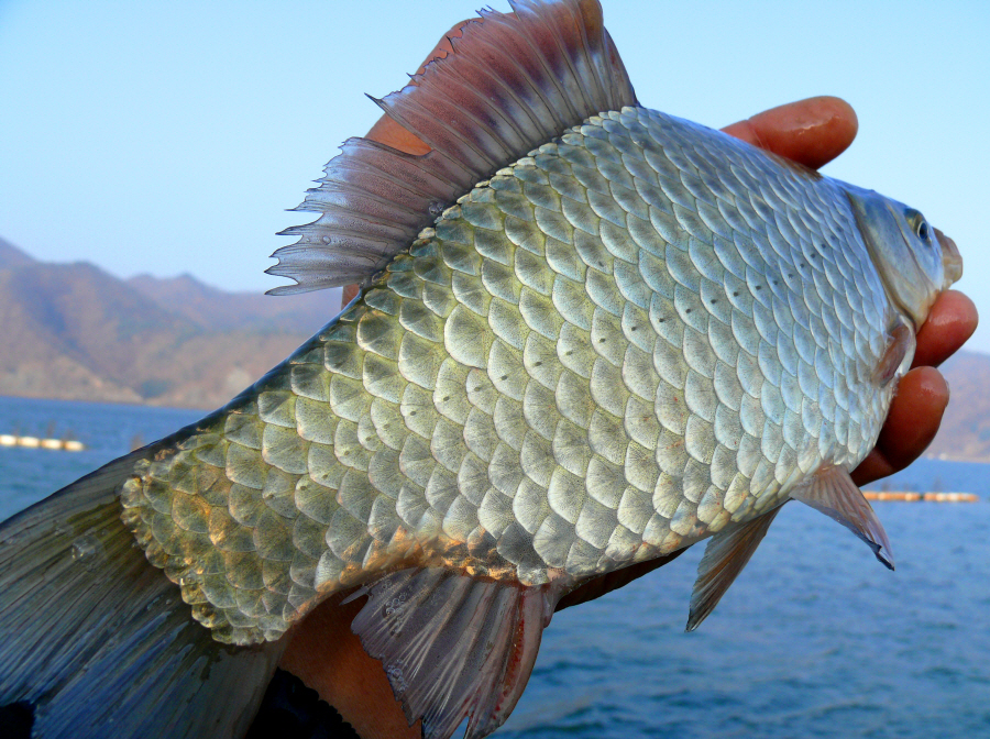 자갈섬 말풀 수초에서 나온 8치급 토종붕어입니다.