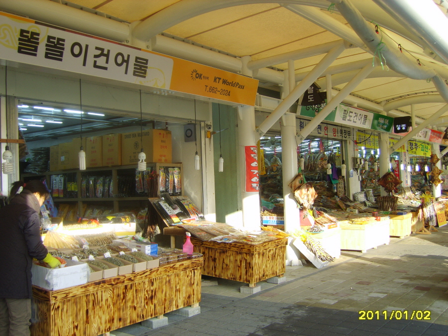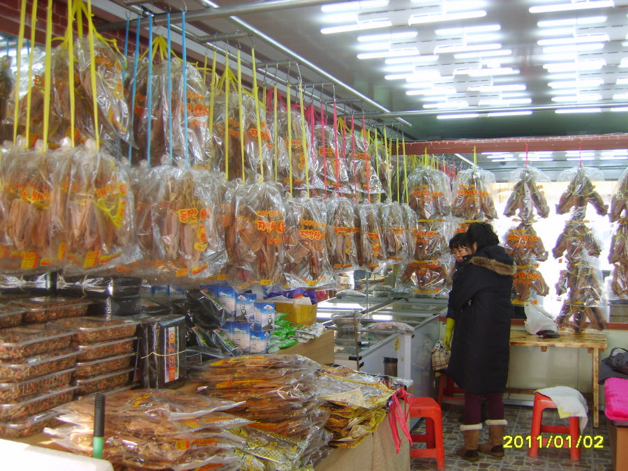 건 오징어를 비롯, 주문진의 여러 말린 생선들이 즐비합니다.