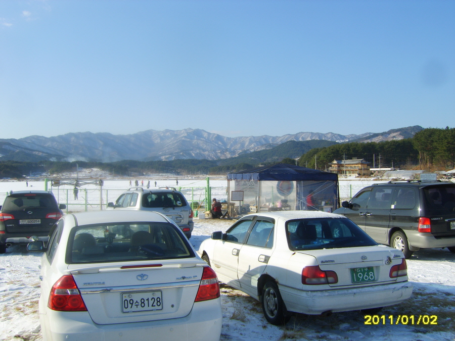 빙어낚시 혹은, 아빠와 썰매를 타러 포매지를 찾은 관광객들...