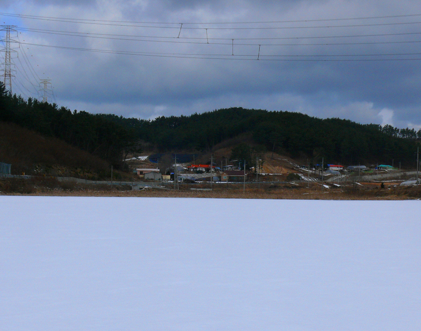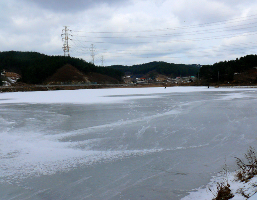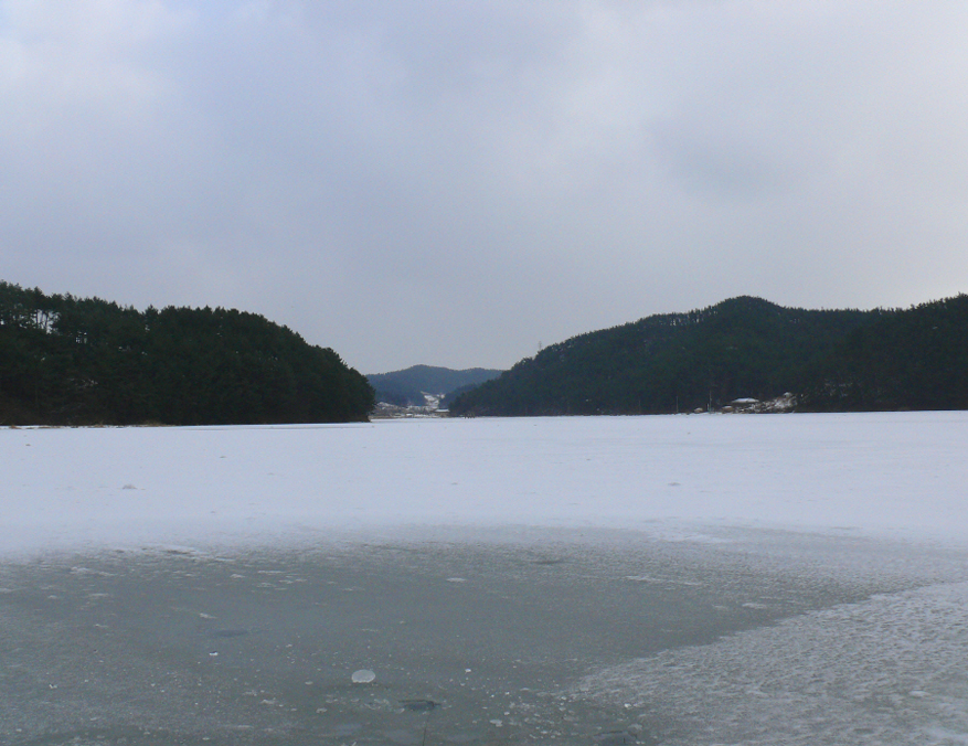 눈 덮힌 이곡지의 상류권입니다.
