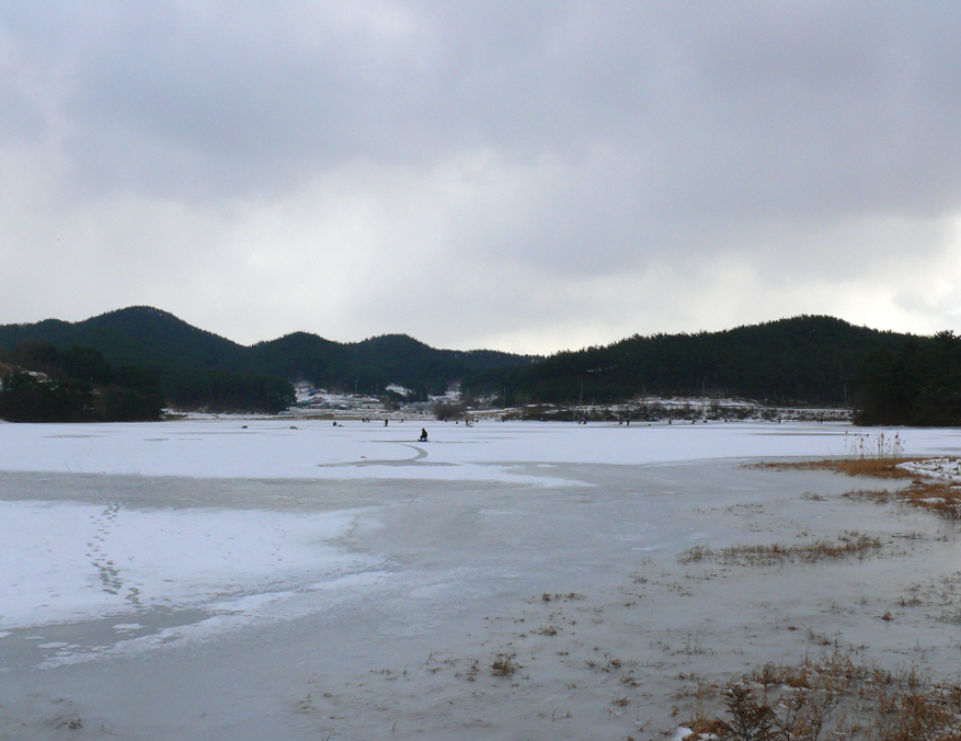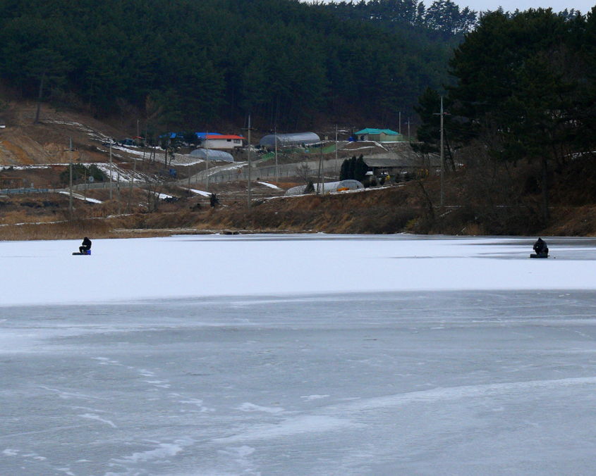 다른 저수지보다 이곡지는 눈이 녹지 않고 그대로 덮혀 있는 상태였고,