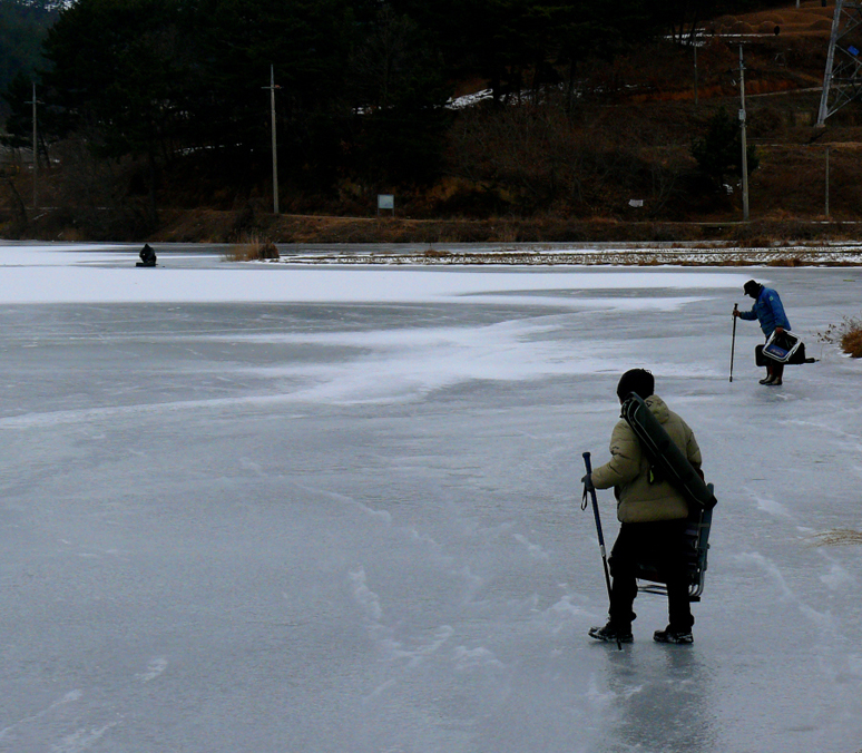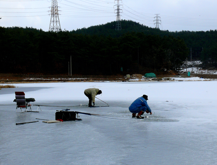 이곡지에서도 얼음낚시를 처음 해 본다.