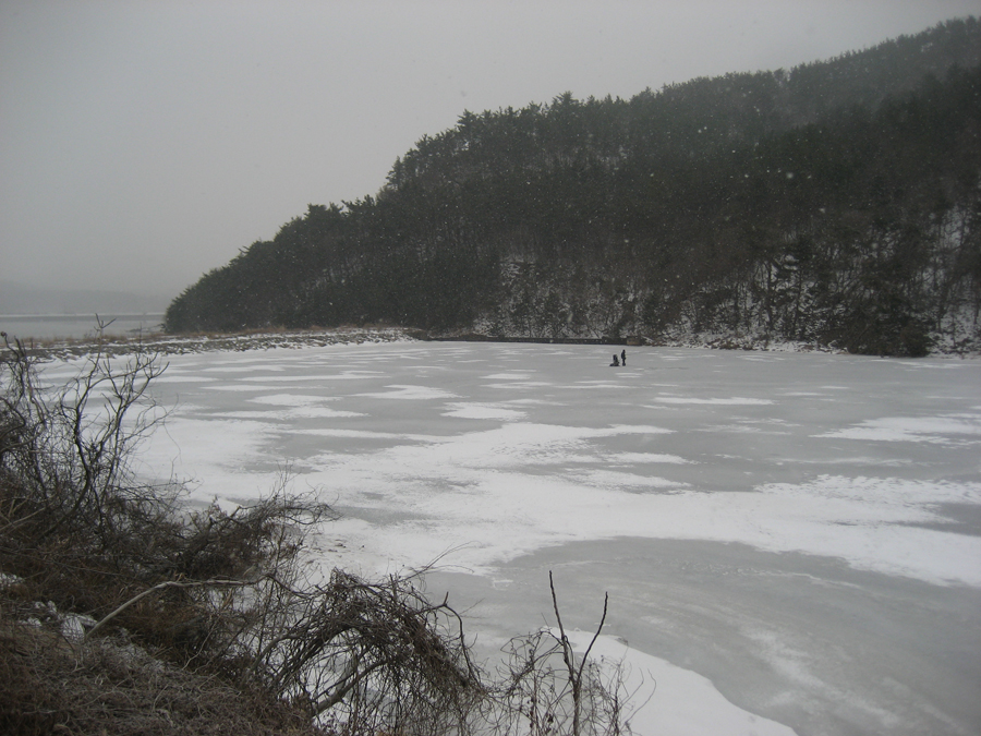 반개지로 가는 중 눈발이 흩날리는 것이 오늘 조과가 신통치 않을 것 같은 불길한 예감이 들었지만