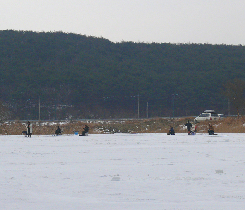 이곳 저곳 포인트를 찾아서 제법 많은 구멍을 뚫어 보았지만 정작 입질은 한번도 받지 못했다.