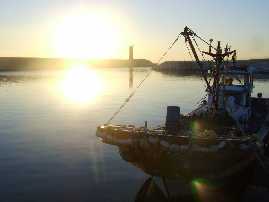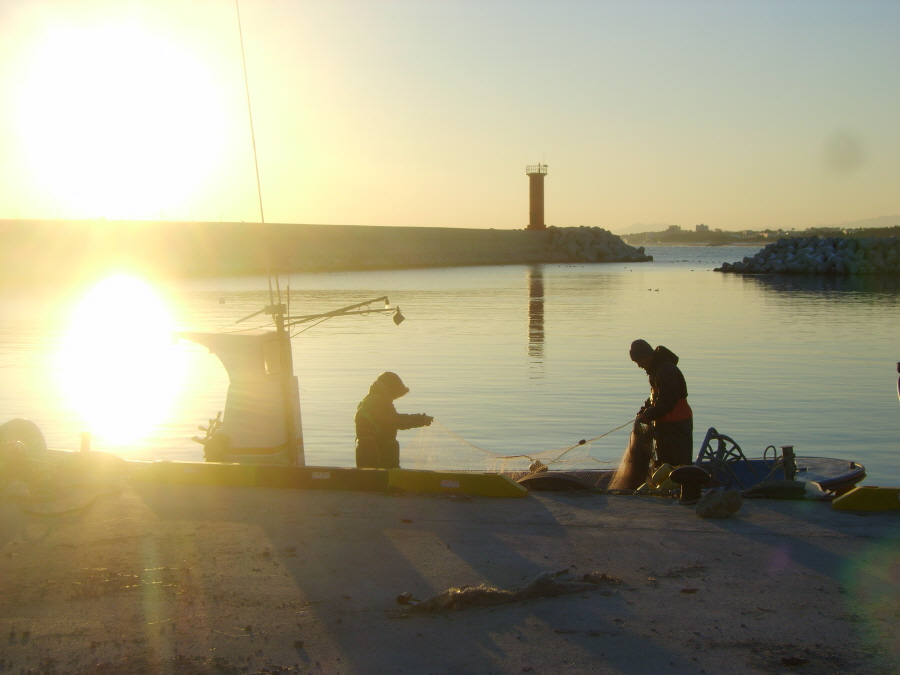 어느 모자께서, 아버님의 새벽 출항 후, 다정하게 입담을 주고 받으시며 그물을 손질하고 계십니다.