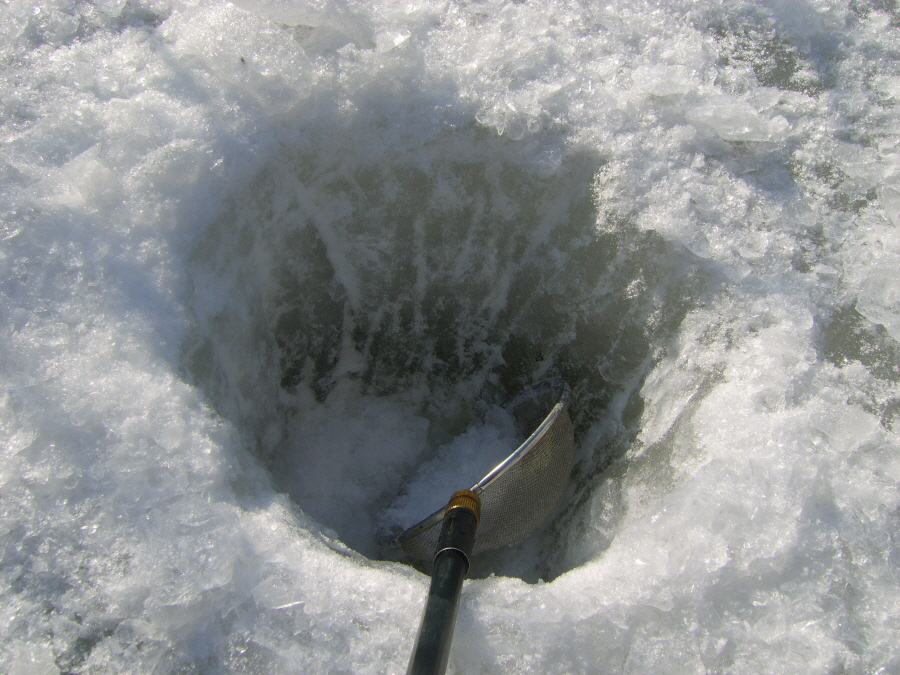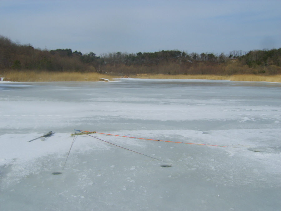 30cm에 가까운 얼음두께를 뚫어놓고, 입질을 기다려 보지만,...ㅠ ~