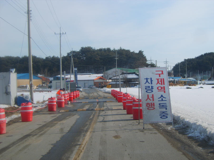 비행장 마을 앞은 소독하는데, 뒷편으로 집입하면 소독하지 않습니다.
