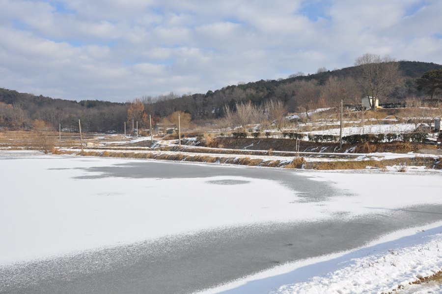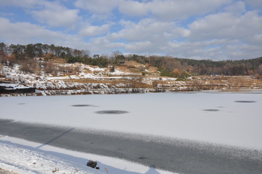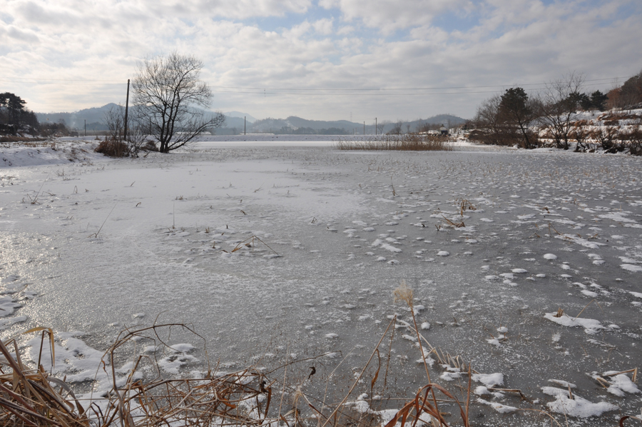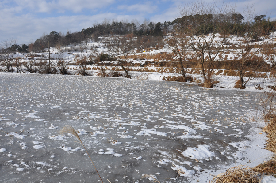 그러나 앗뿔싸 근래에 보기 드물게 남도쪽에 많은 눈이 내리고, 그것도 모자라 소류지에 얼음이 꽁꽁 얼어 버렸다.