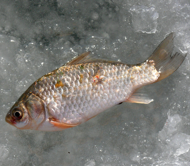 붕어가 나오자 말자 바로 얼어 버립니다.
