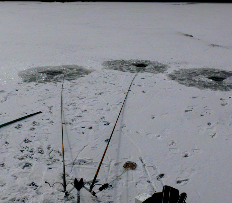 창기지 중앙부근과 섬부근에 나누어져서 얼음구멍을 뚫었는데