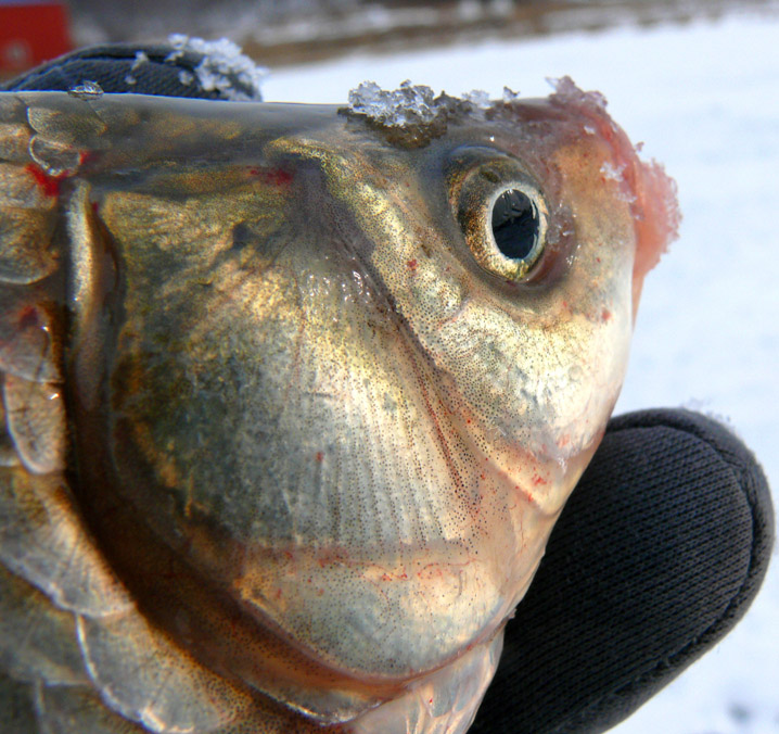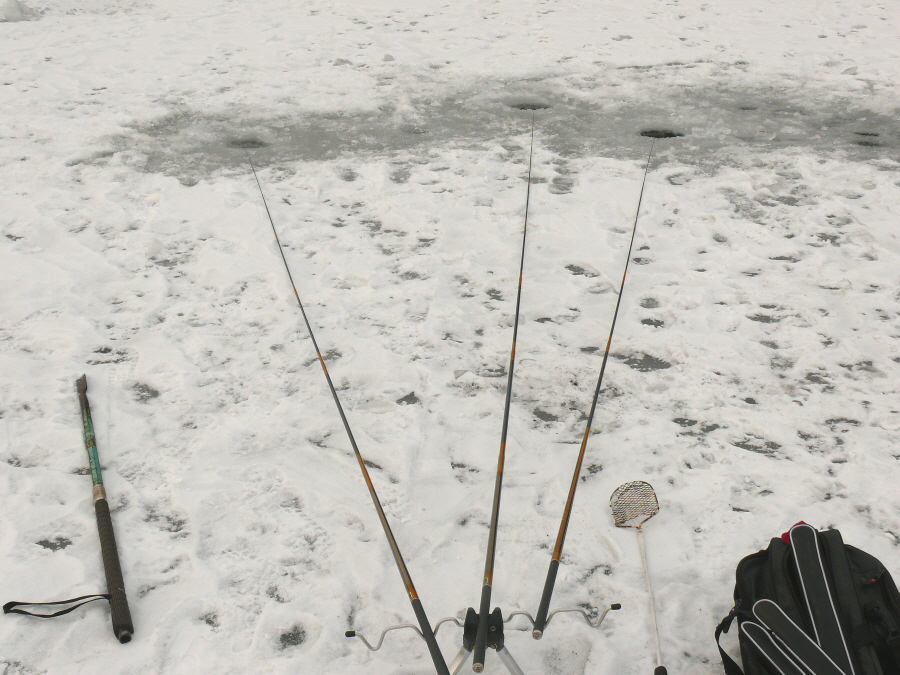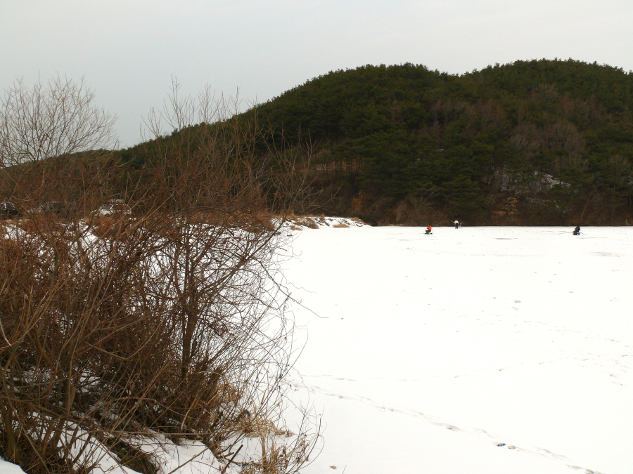 눈이 많이 덮혀 있고 날씨까지 흐려서 인지 간간히 잔씨알과 참붕어 입질 같은 것이 찌를 움직여 주었지만