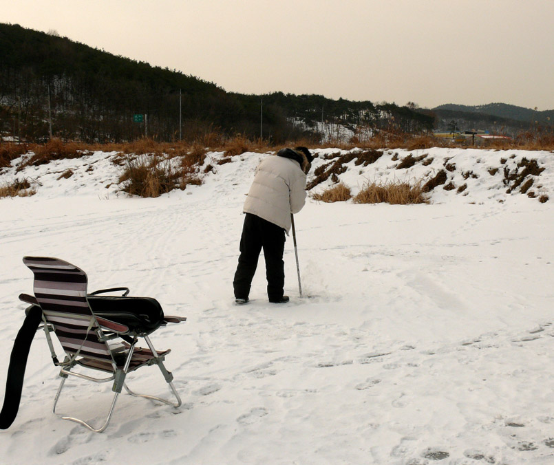 날씨 흐리고, 얼음에 눈이 덮히고, 얼음두께가 20센티가 넘는 소류지에서는 제대로 손맛을 본적이 없는 것 같습니다.
