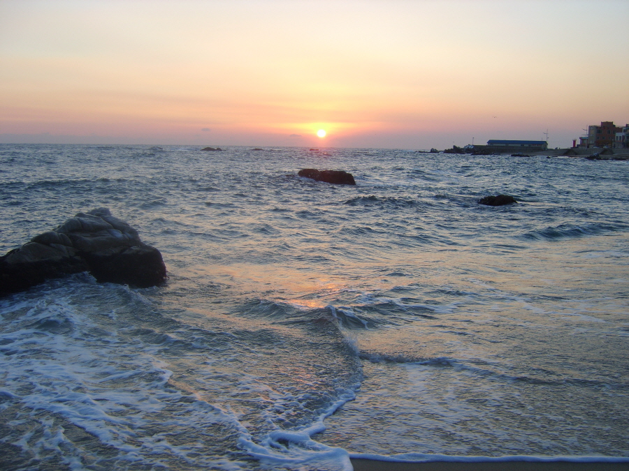 낮이 길어진 탓에, 서둘러 바닷가를 찿아 봅니다. 아침 7시 15분 경....구름위로 일출을 맞습니다.