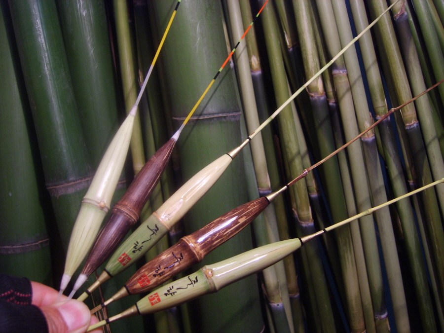 좌측부터, 왕죽. 오죽. 시죽.오죽.왕죽 모두, 대나무를 이용한 찌 입니다.