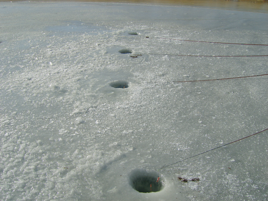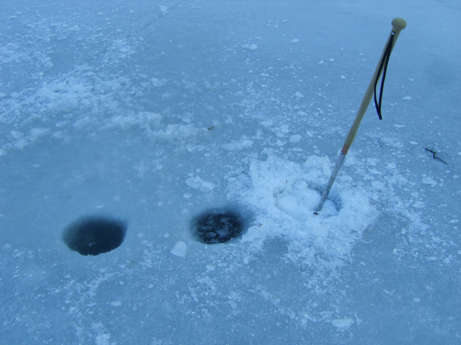 그래서, 어렵게 얼음구멍은 딱 4개만 뚫어놓고, 입질을 기다려 보았습니다.