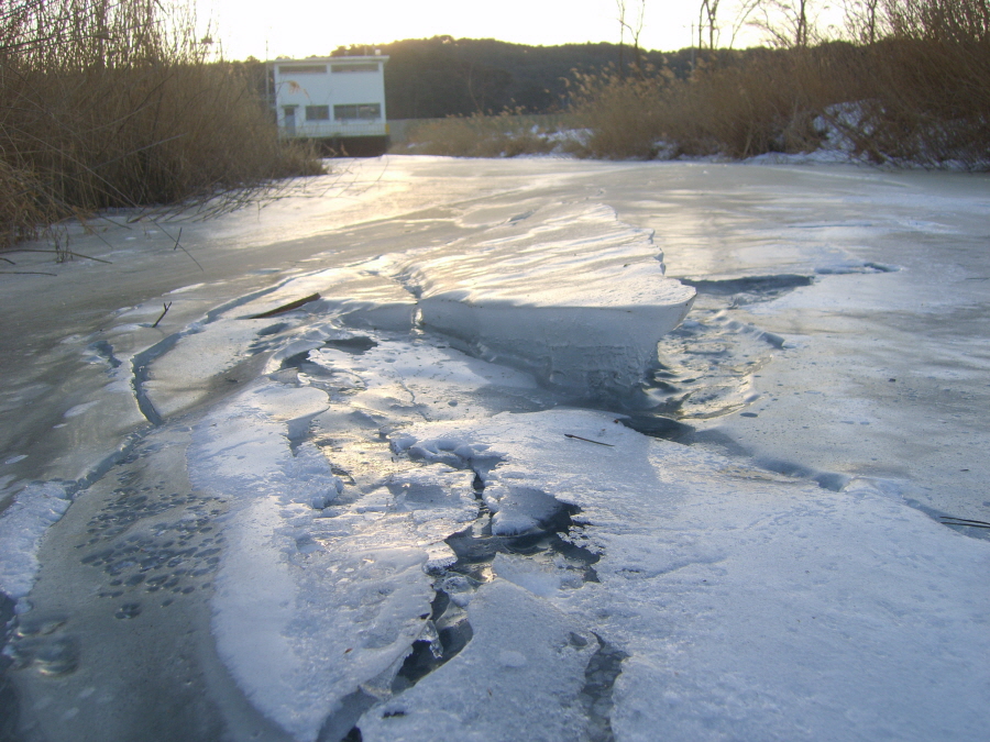 밤새, 영하 10도가 넘는 강추위에, 얼음판이 이렇게 변했습니다.