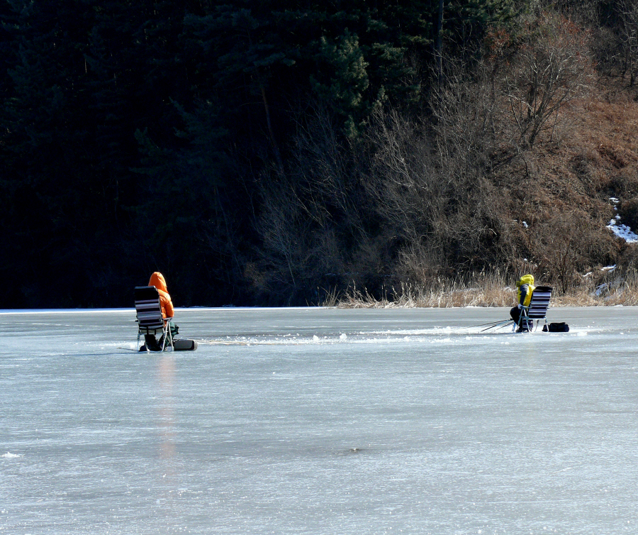 ** 얼음낚시는 안전이 우선입니다!!... 진입전 빙질을 확인하시고, 구명장비 (구명복, 박스 등...)를 준비, 2인 이상 동행 출조하시기 바랍니다.