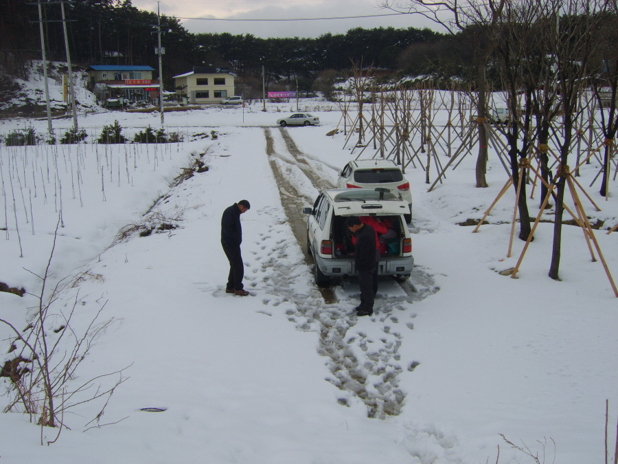 눈발이 멈춰서더군요. 아파트 지하에 깨끗하게 주차되어 있던 애마에 불을 짚혀, 물가로 냅다 질렀습니다.