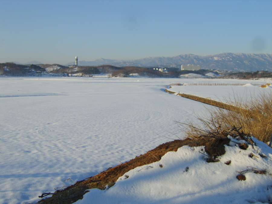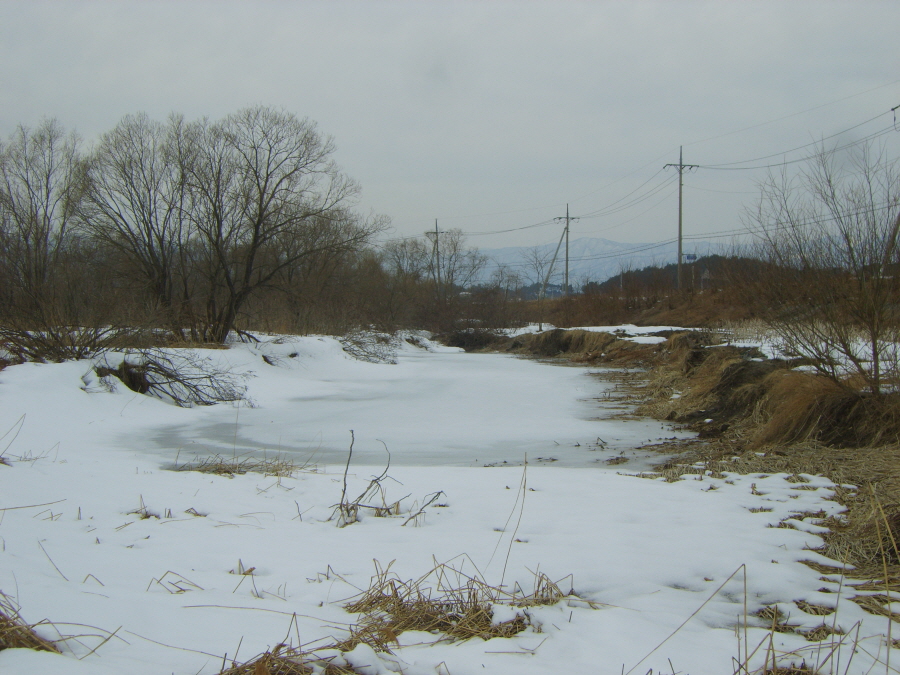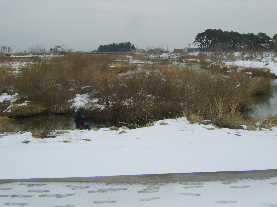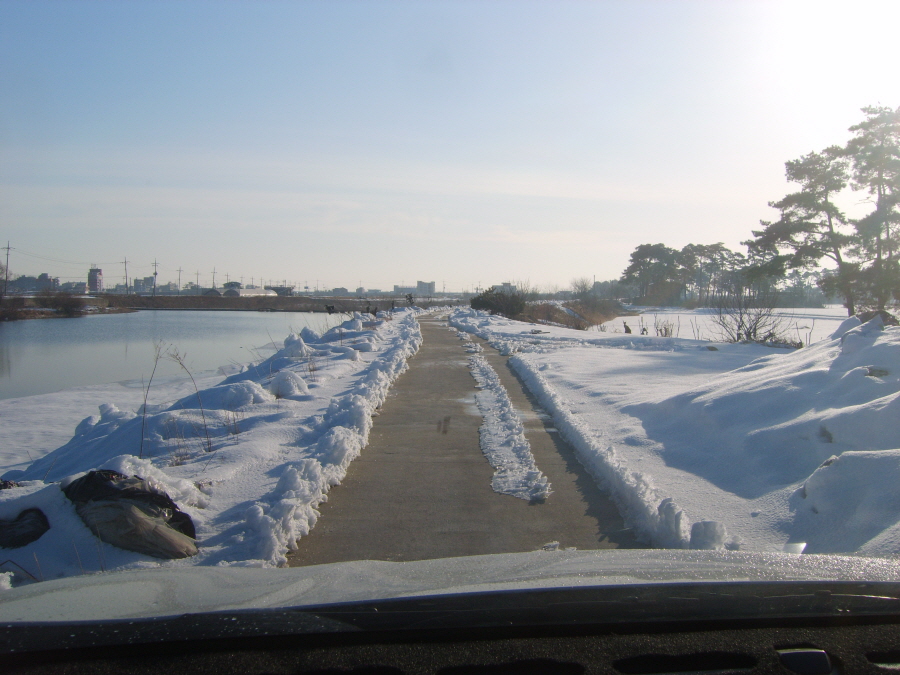 뚝방 길로 진입을 할 수가 없었습니다. 눈 때문에,...