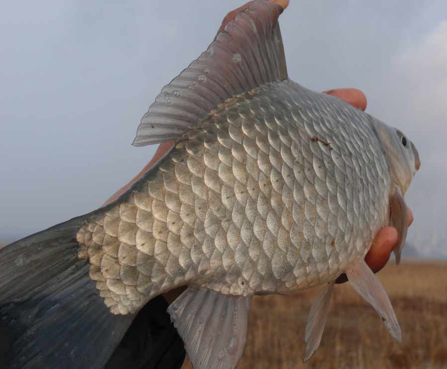 윤교수님이 8치급 붕어를 걸어 내었습니다