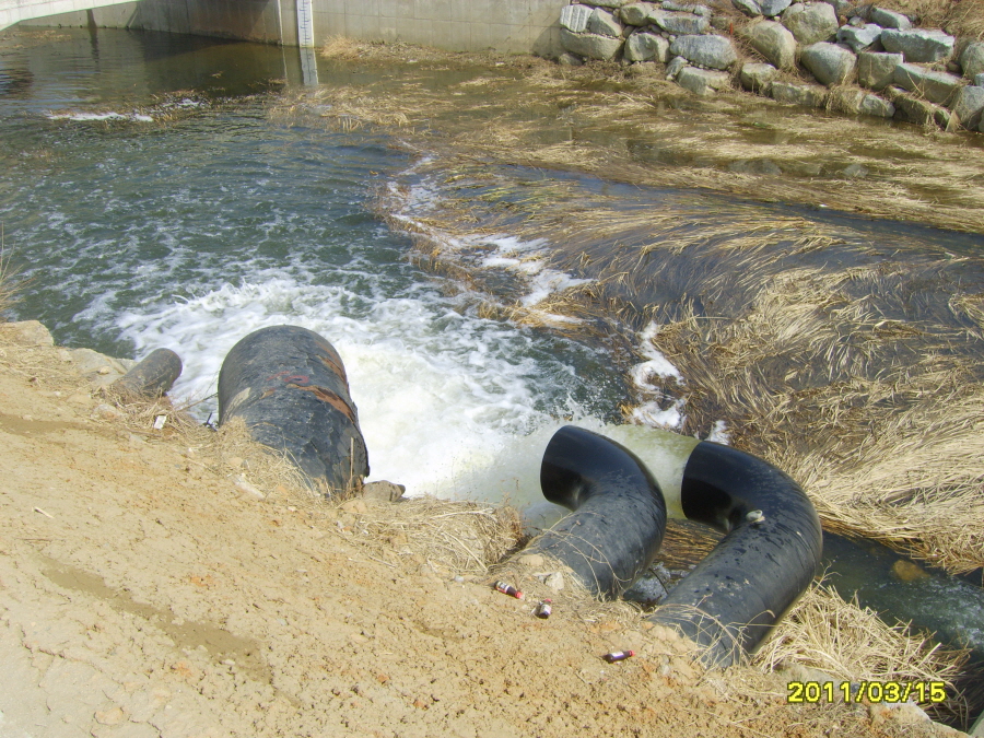 오후 3시경... 배수(20cm 쯤)가 진행되면서, 입질이 뚝 끊겼습니다.