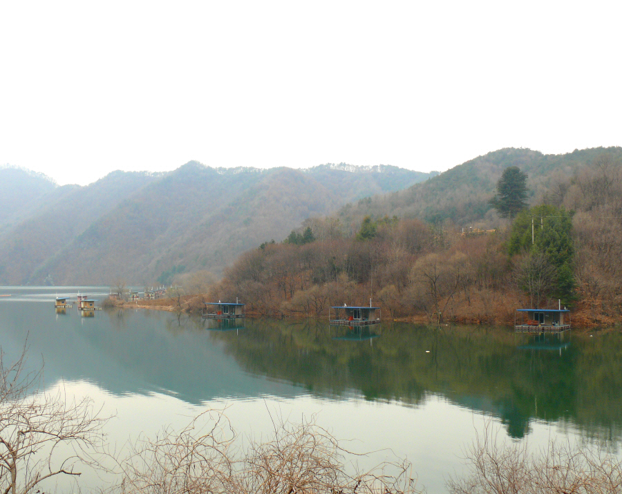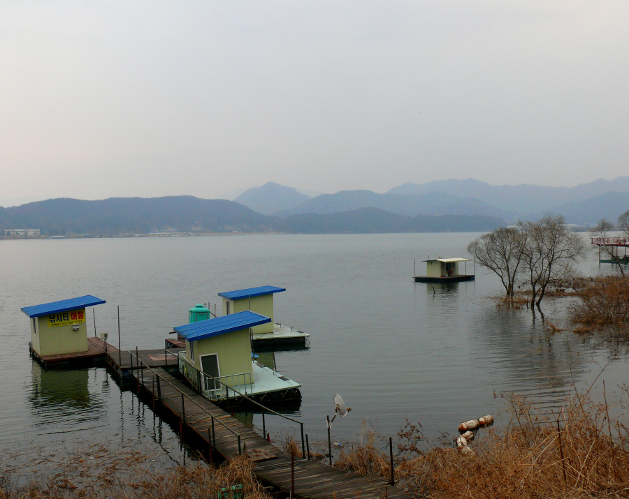 손님 맞을 준비가 끝난 춘천댐 고탄낚시터입니다.