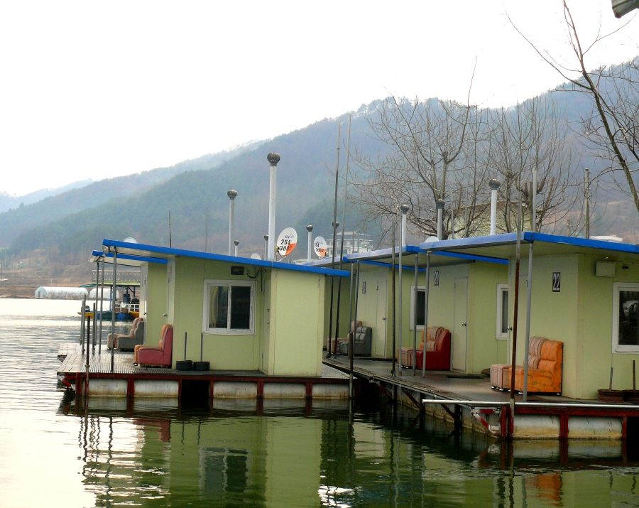 자갈섬낚시터의 콘도형과 팬션형 좌대들입니다.