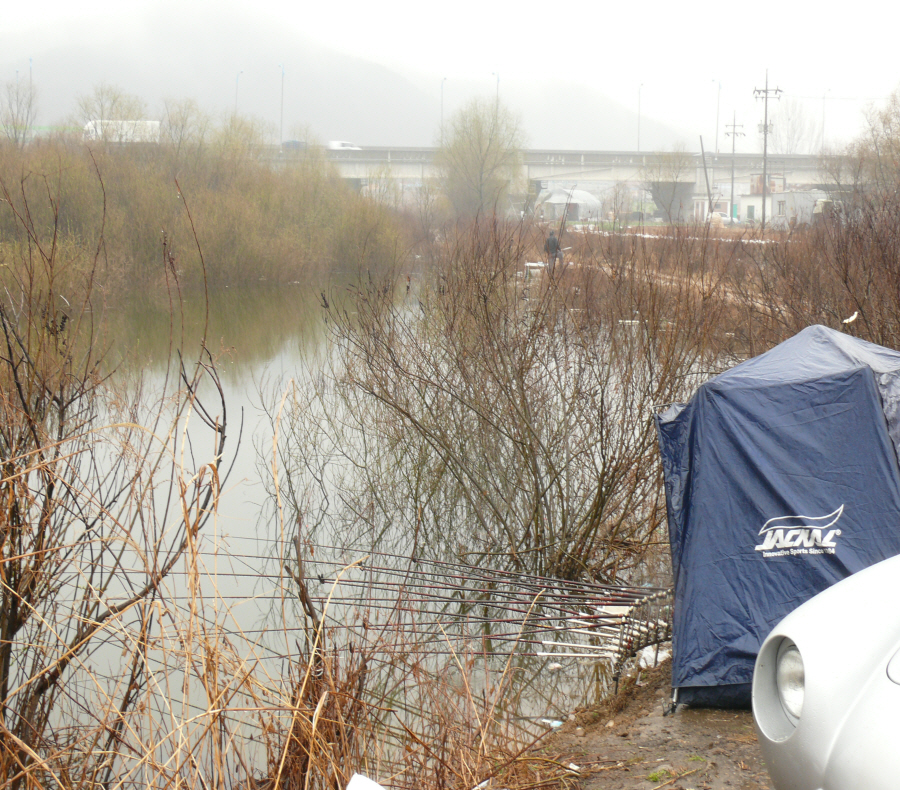 사람이 없을 줄 알았는데 골수회원님들이 전날 밤낚시를 하고서 비오는 와중에도 자리를 고수하고 있었다.